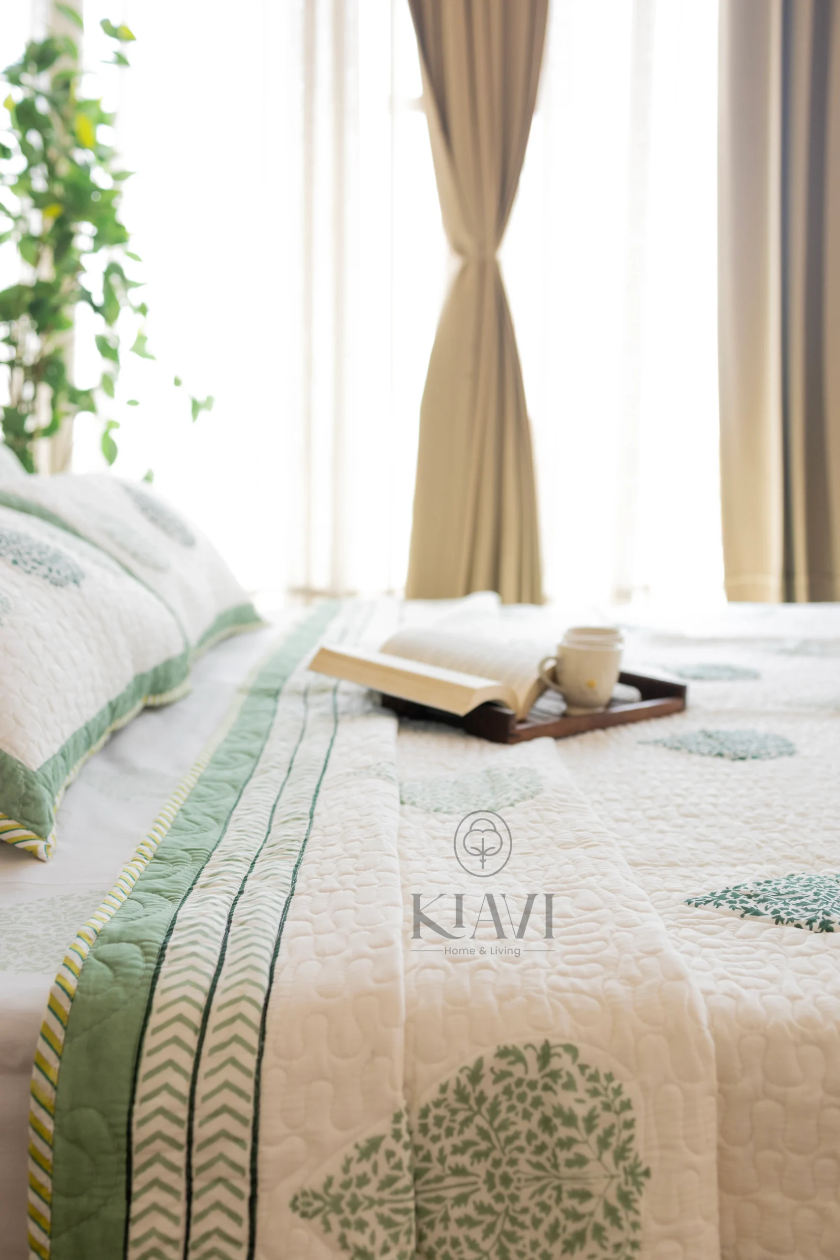 Beetle Grace Hand-Block Printed Bedding Set with BedCover