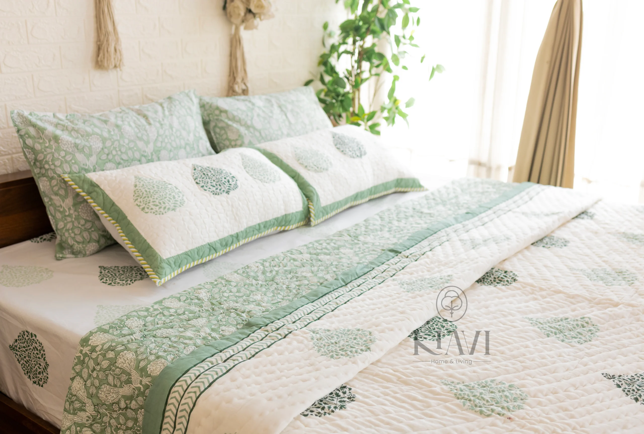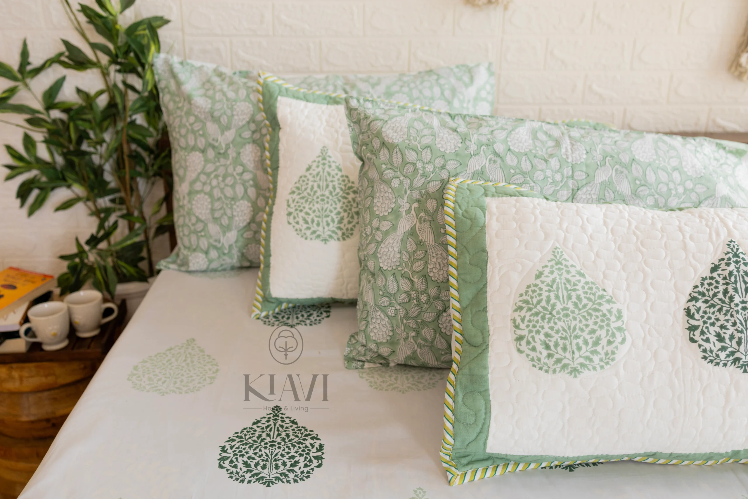 • Pillow Covers: 18*28 inches / 46*72 cms, matching the bedsheet with a hand-block printed floral design to enhance the overall look.