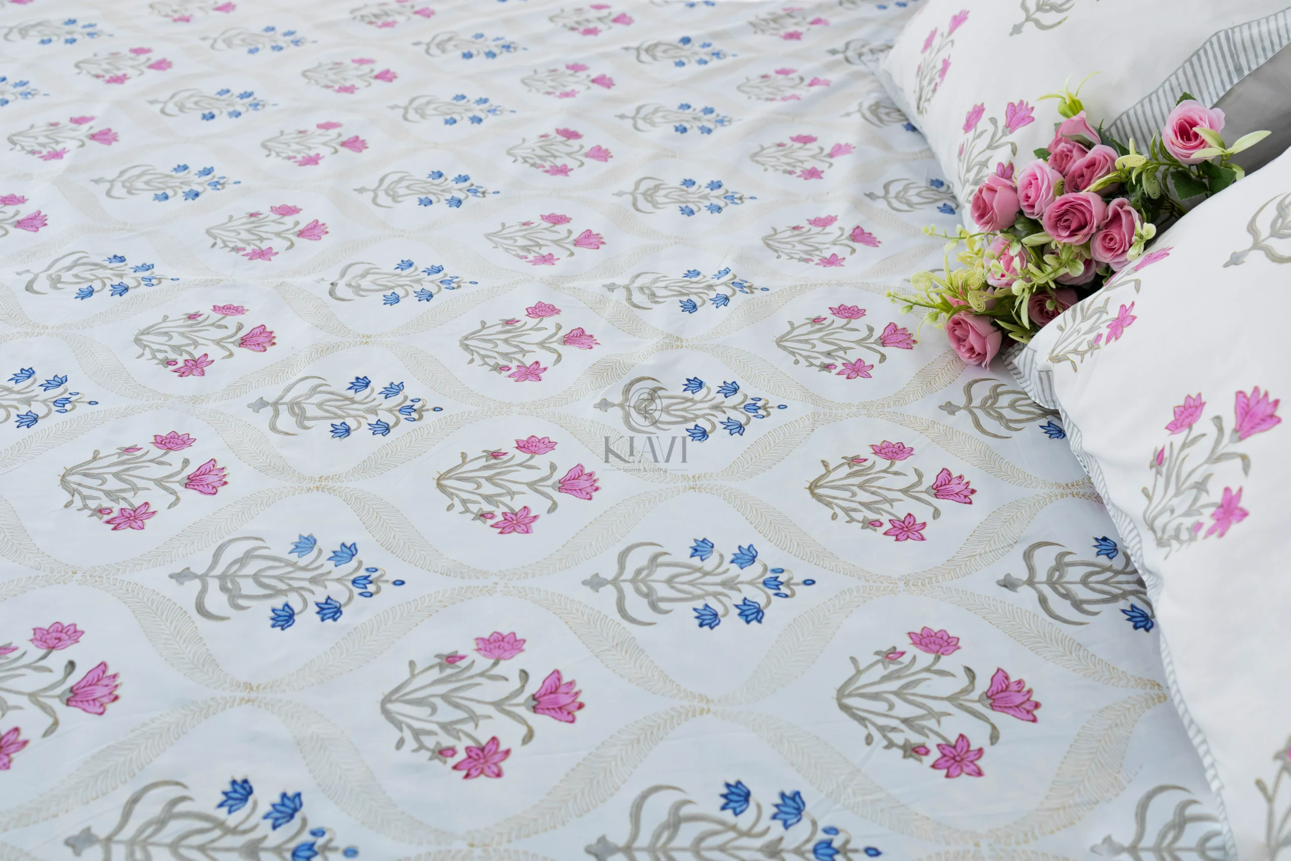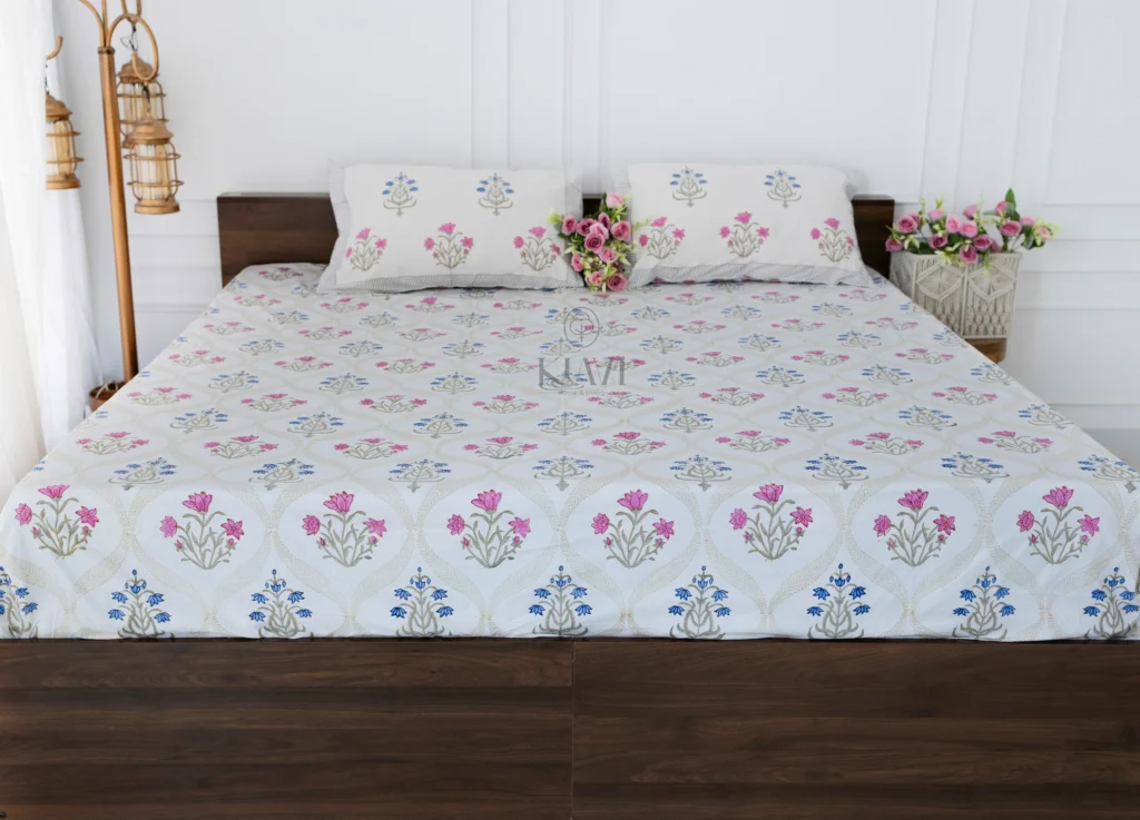 • Pillow Covers: 18*28 inches / 46*72 cms, designed to complement the bedsheet with a matching hand-block printed floral design.