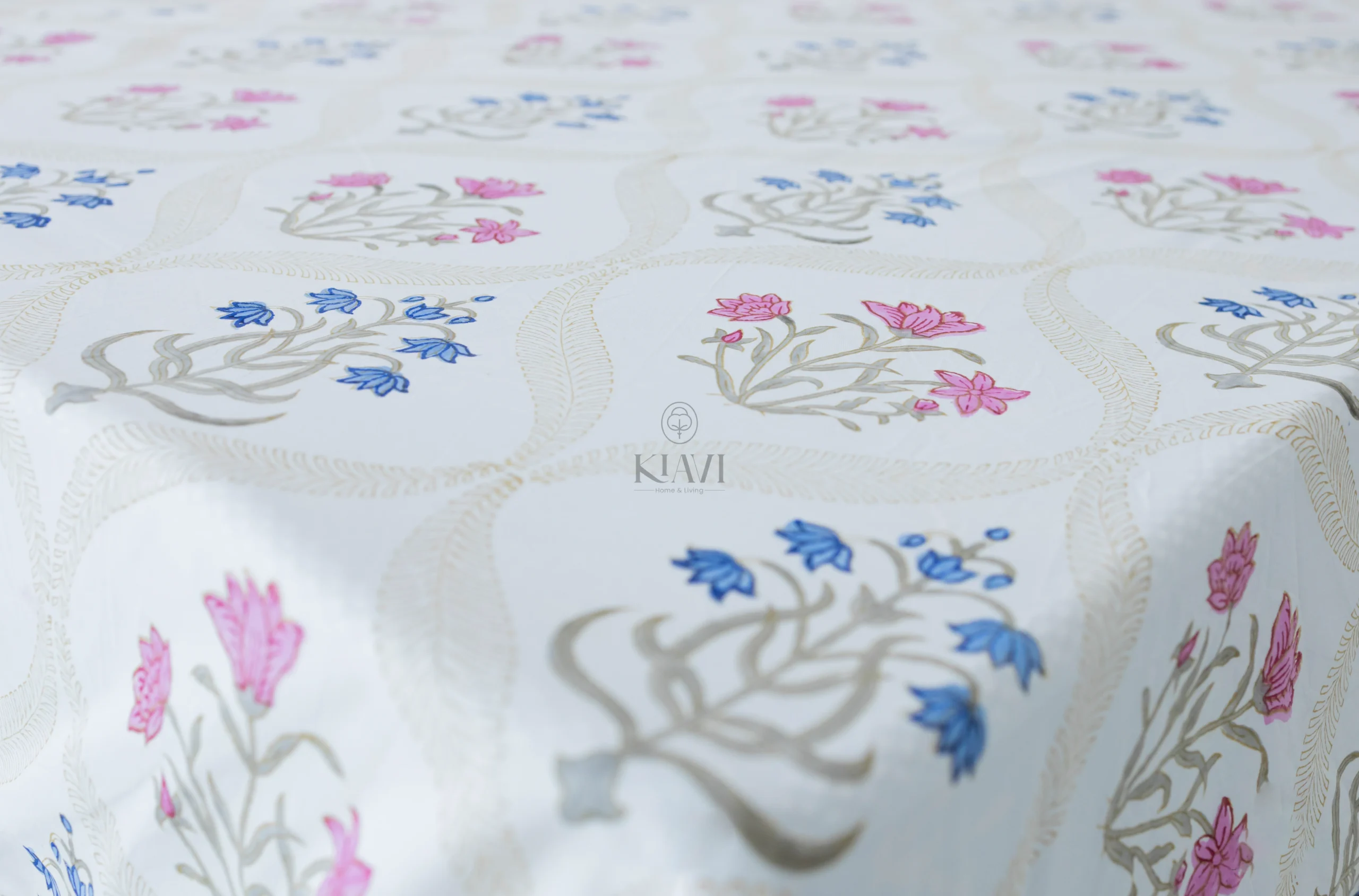 • Design: Elegant hand-block printed blue flowers, green leaves, and graceful trees arranged in a symmetrical, peaceful pattern that adds a sense of harmony to your room.