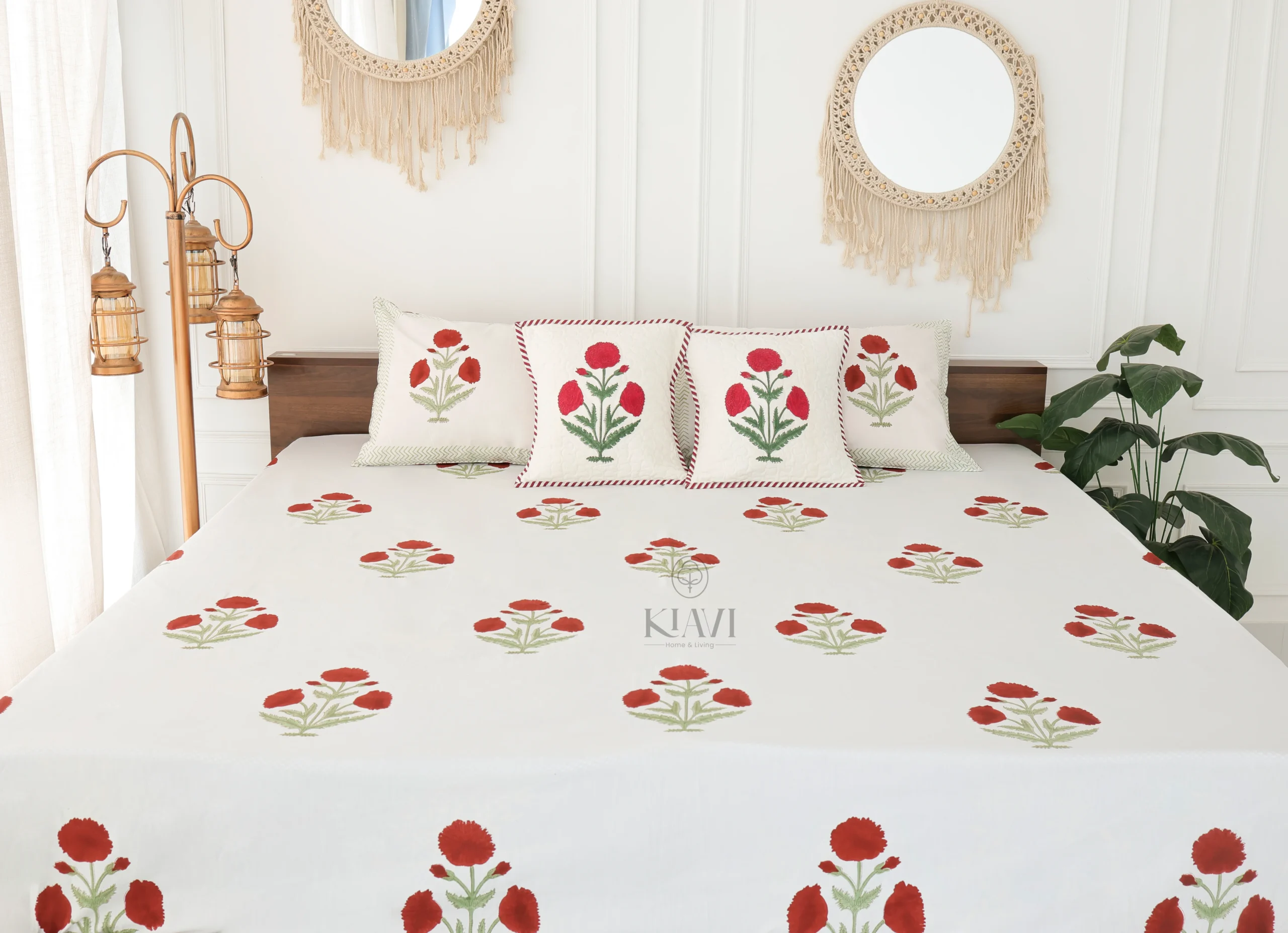 Scarlet Bloom Bedsheet – Hand Block Printed Bedsheet Set