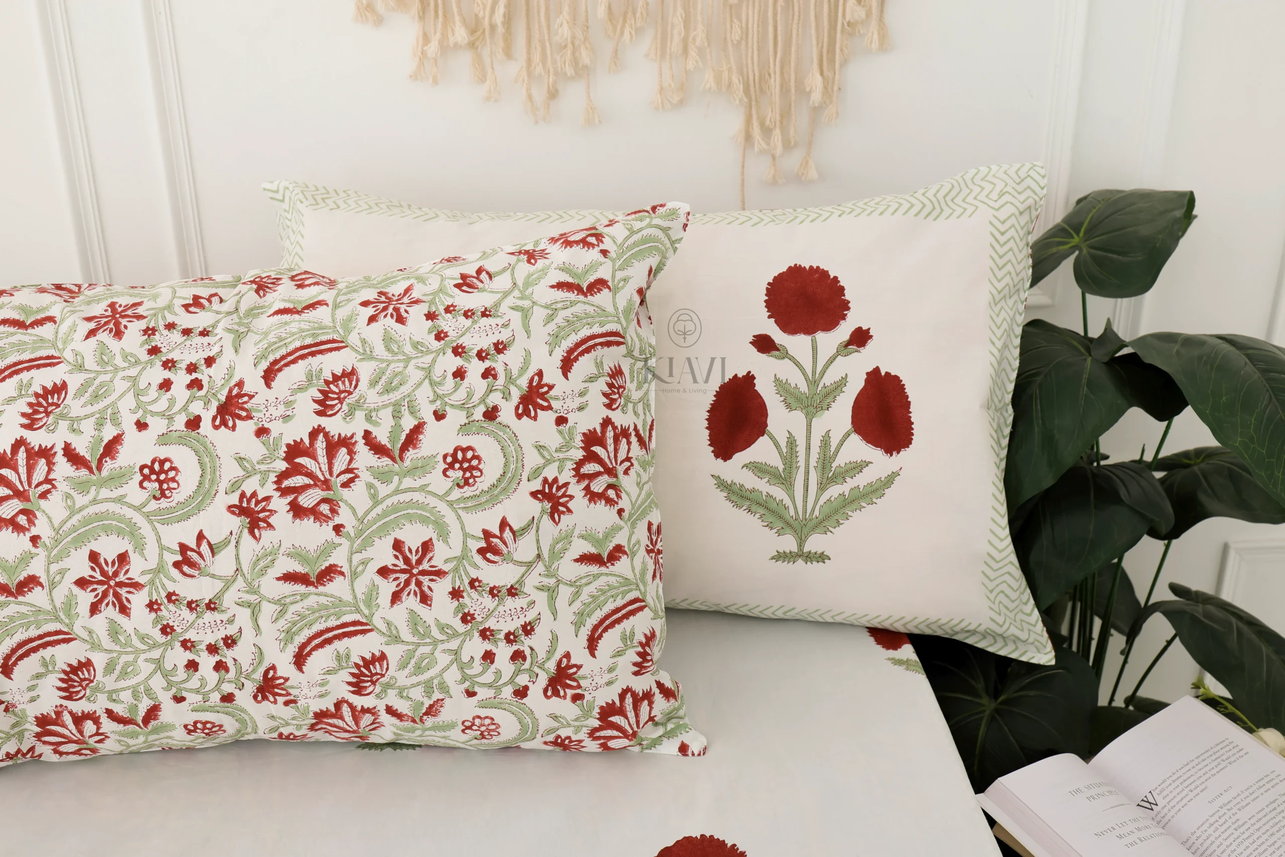 • Pillow Covers: 18*28 inches / 46*72 cms, designed to complement the bedsheet with a matching hand-block printed floral design.