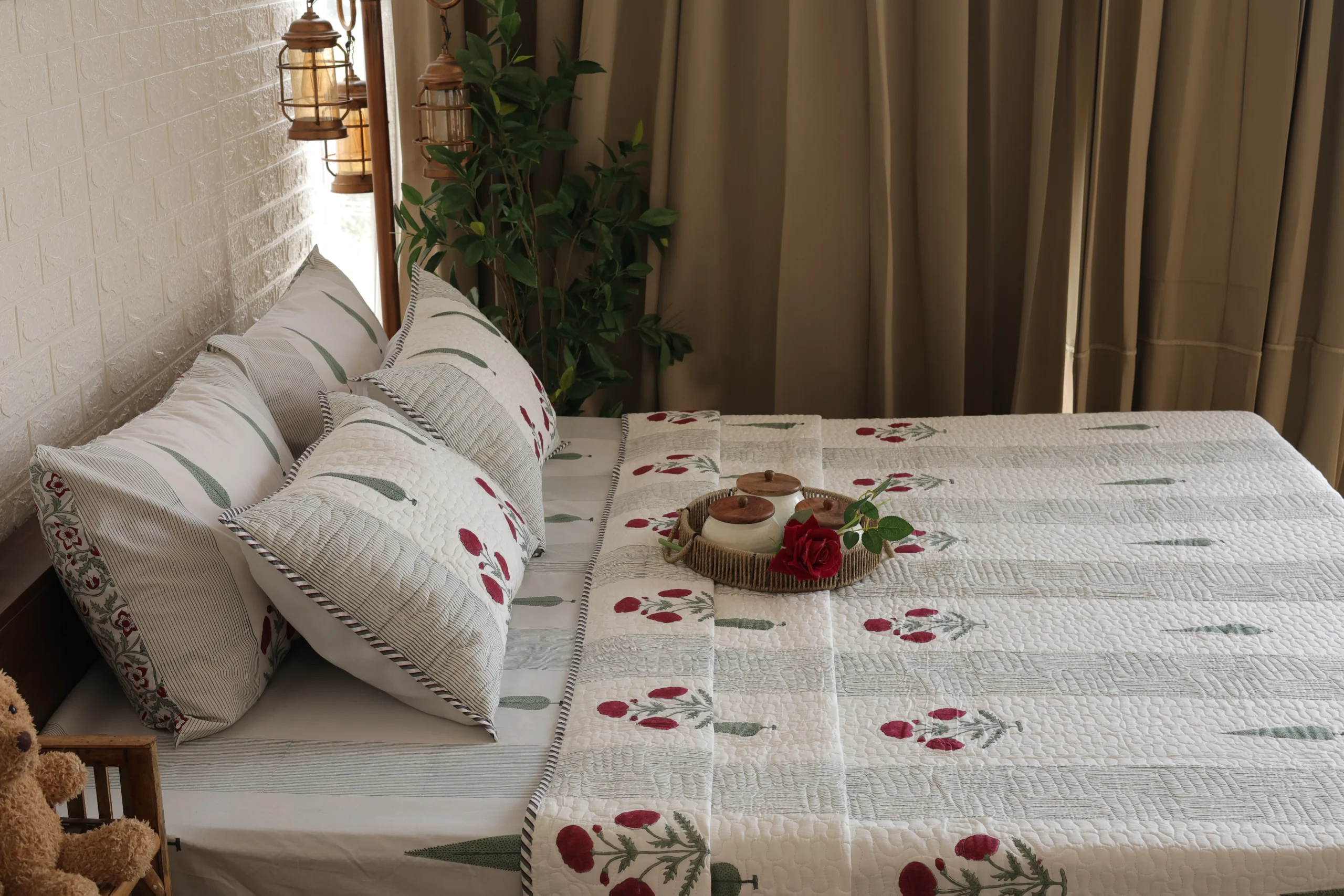 Be the first to review “Scarlet Stripes Hand-Block Printed Bedding Set and BedCover”