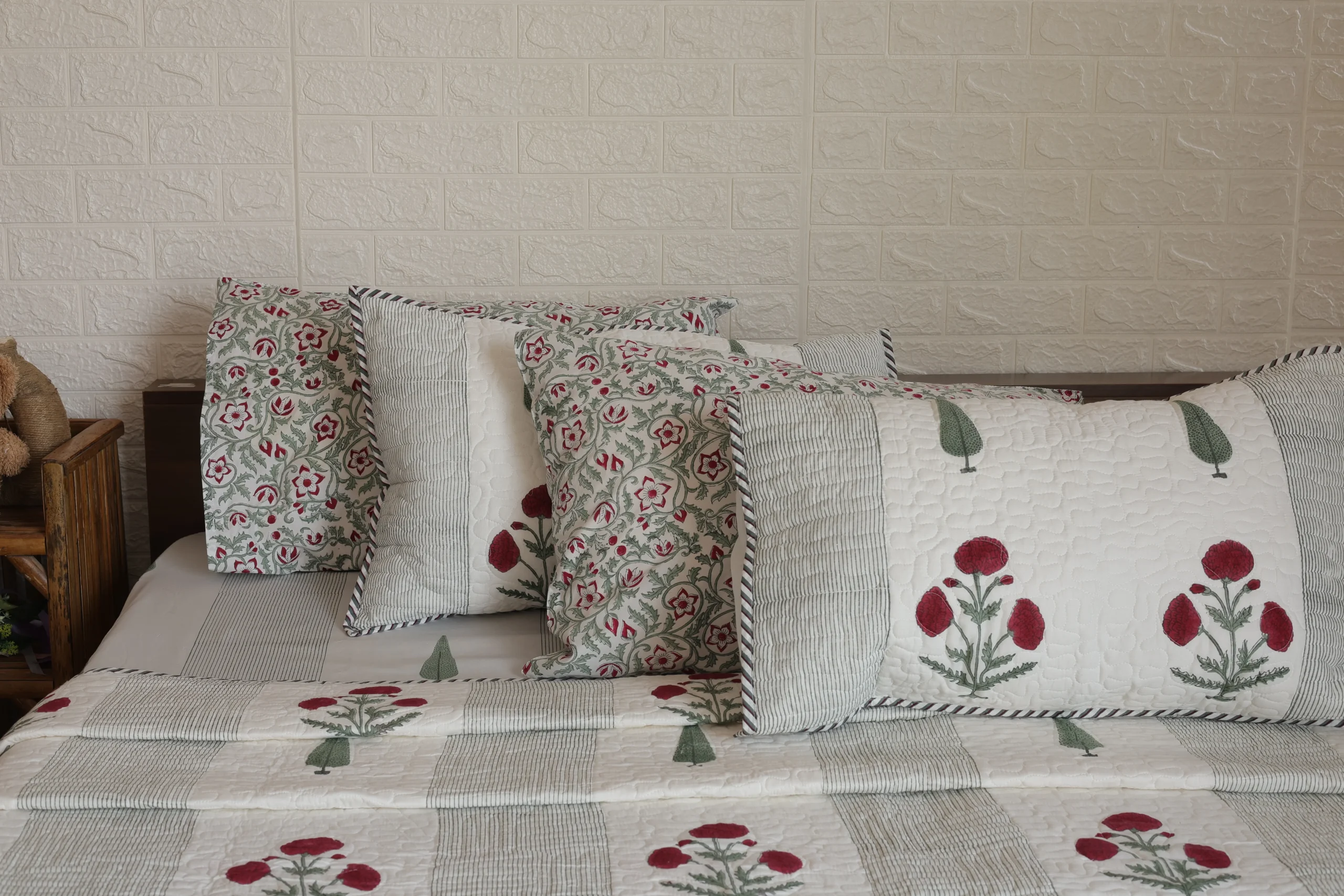 Scarlet Stripes Hand-Block Printed Bedding Set and BedCover