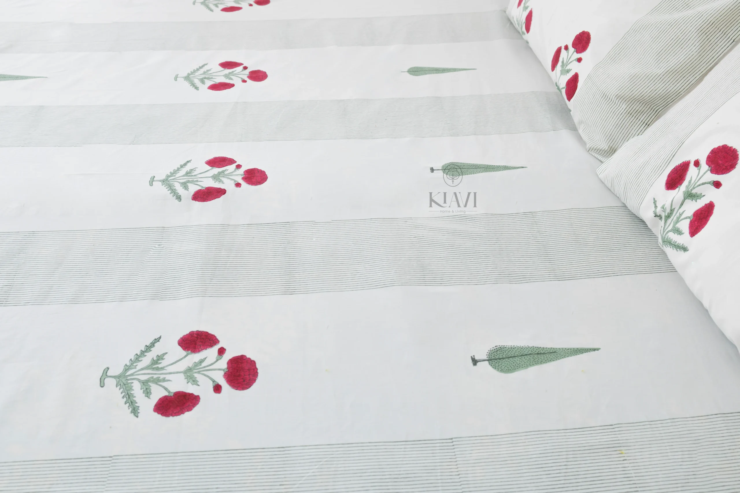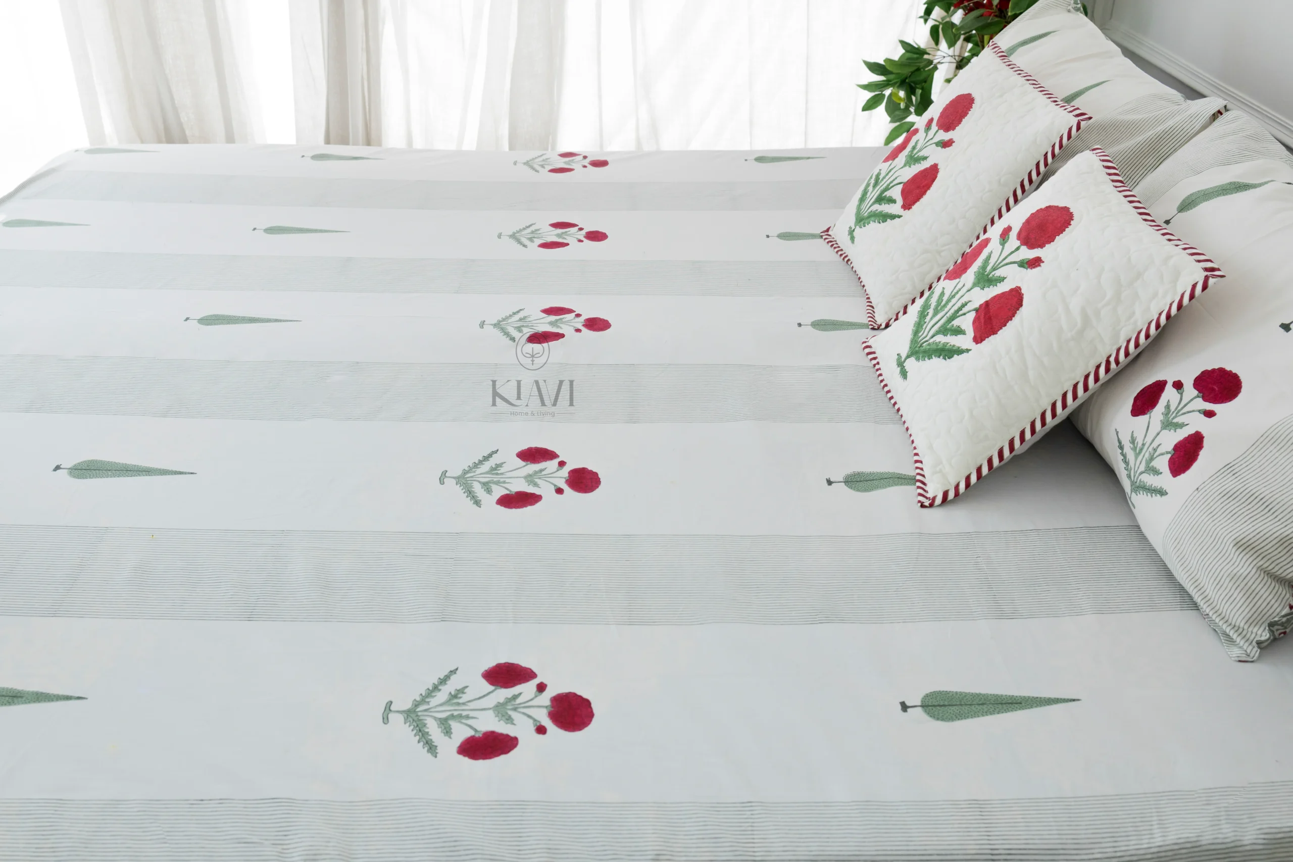 Scarlet Stripes Hand-Block Printed Bedsheet Set