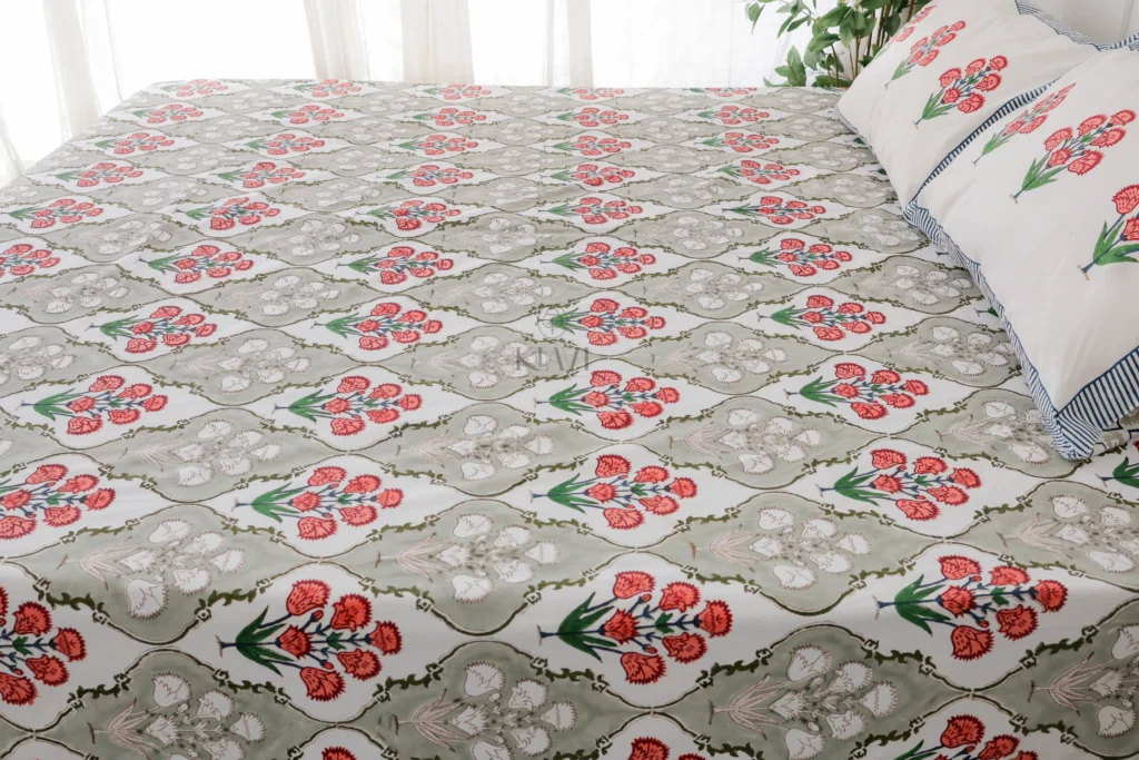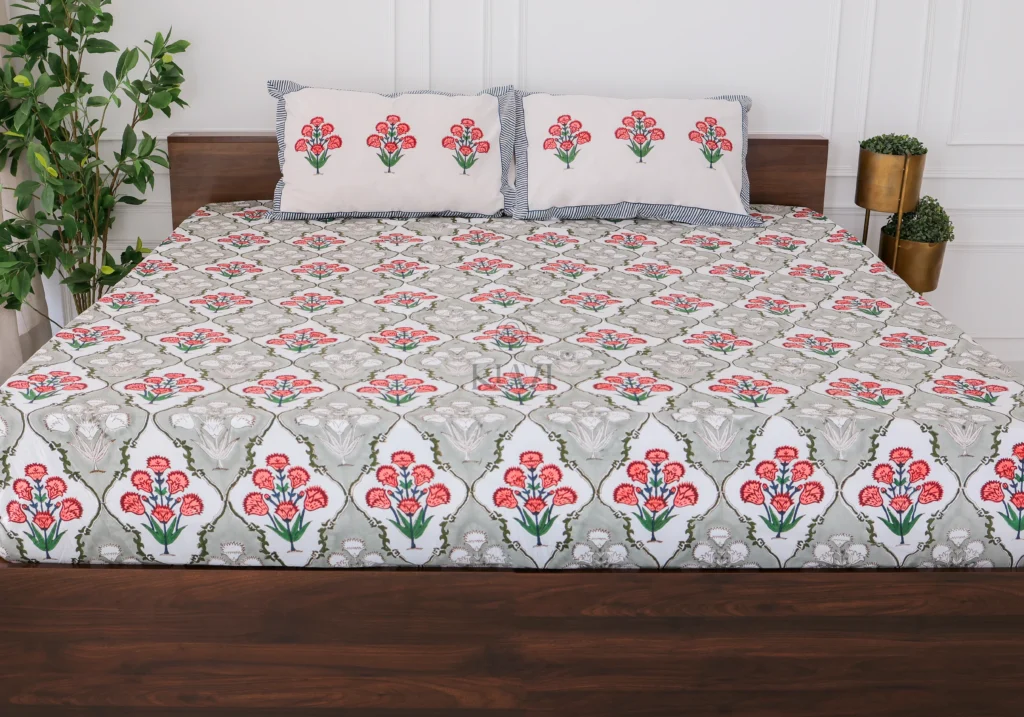 Smoky Garden Hand-Block Printed Bedsheet Set