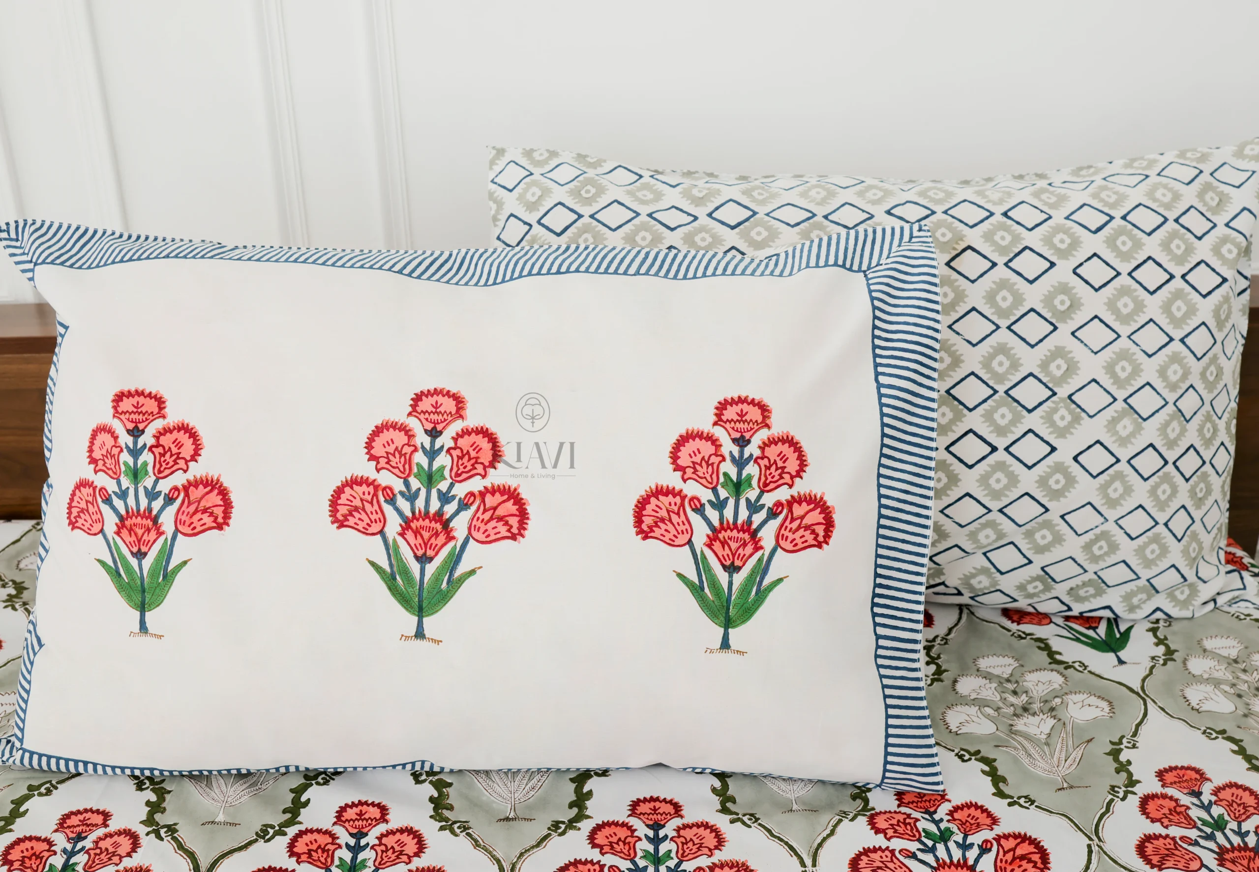 • Pillow Covers: 18*28 inches / 46*72 cms, designed to complement the bedsheet with a matching hand-block printed floral design.