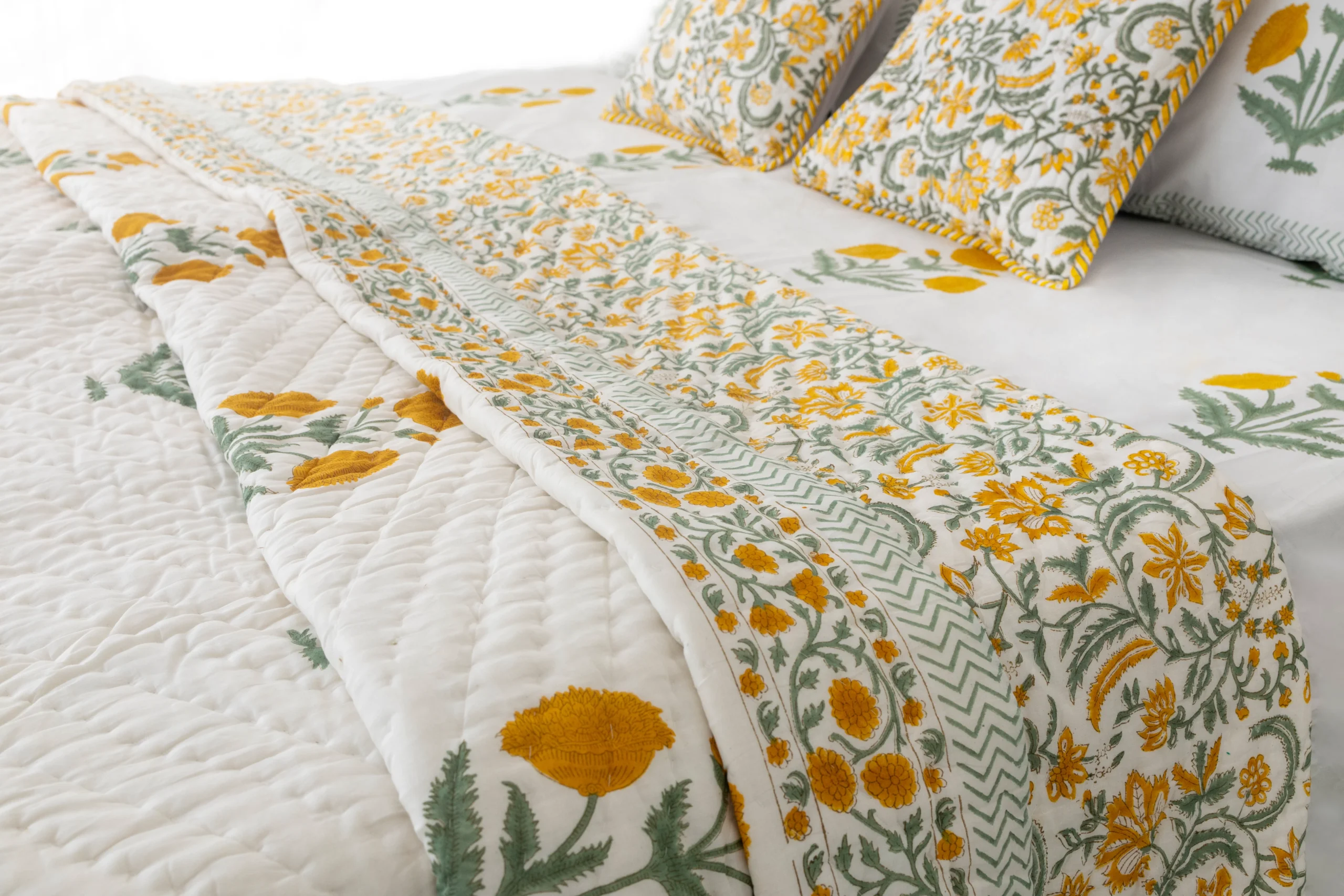 • Minor imperfections in the prints are part of the hand-block printing process, making each piece unique.